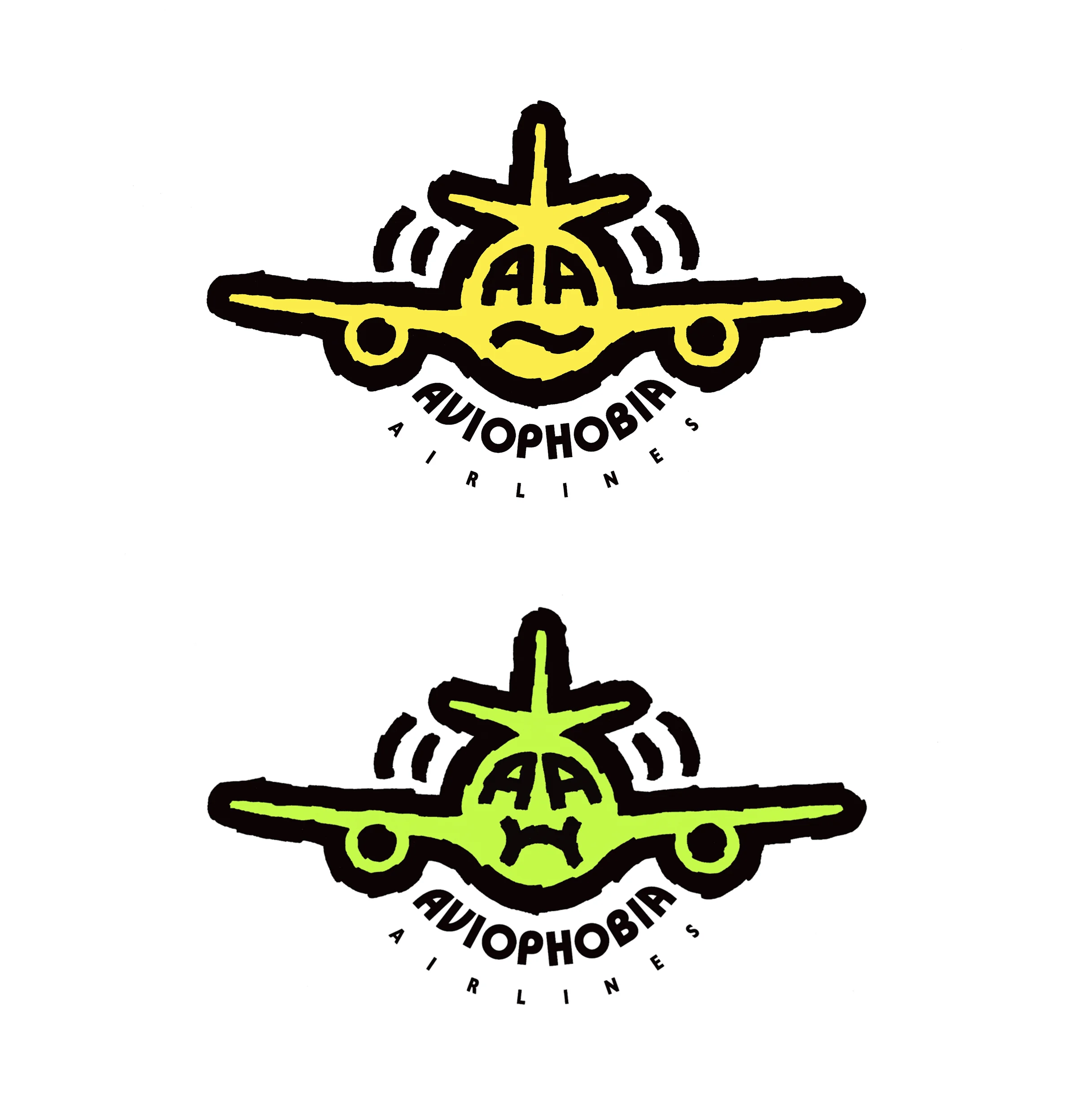Logo, Identity system, and branded items for Aviophobia, an airline concept specifically targeting people who are afraid to fly.