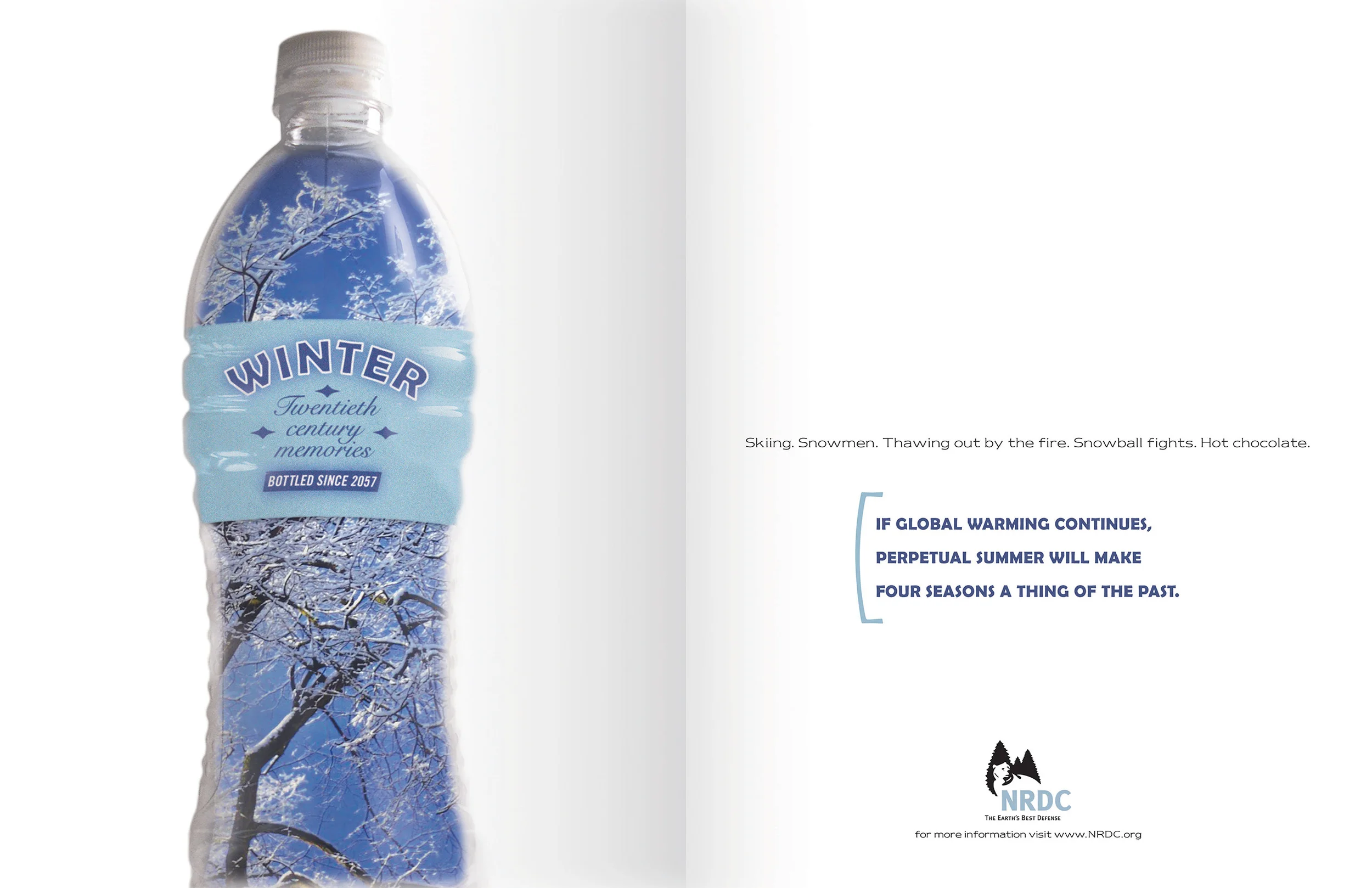 Ad campaign for the Natural Resources Defense Council, a non-profit environmental advocacy and action group. This series focused on the issue of global warming, suggesting that if we don't take action to curb waste and pollution driven by consumerism, we'll create a future without the four distinct seasons we're accustomed to.